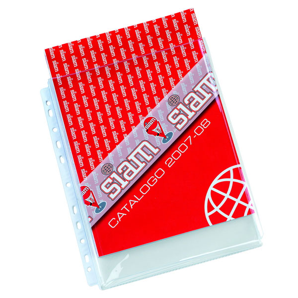 BUSTE A FORATURA UNIVERSALE CON SOFFIETTO Realizzata in polipropilene trasparente spessore 18 microns. Soffietto da 3 cm di larghezza. Formato 30,5x23,5 cm. Confezioni da 10 pezzi. Scatola da 6 confezioni.
