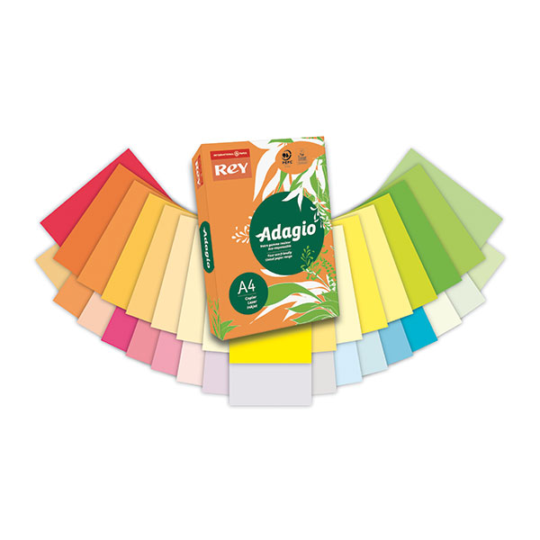 Carta colorata in formato A4, 80 grammi, assortita nei colori fluorescenti (125fg x giallo fluo, 125fg x verde fluo, 125fg x rosa fluo, 125fg x arancio fluo). Garantita per stampanti ad inchiostro e laser. Certificazioni "EU Ecolabel" e "PEFC".