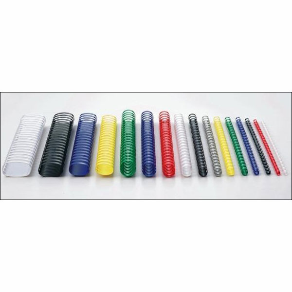 50 ANELLI PLASTICI 38MM BIANCO Spirale plastica a 21 anelli per cataloghi, listini, ecc. Lunghezza 30cm. Rilega fino a 350 fogli da 70gr. Dotata di chiusura di sicurezza per resistere al peso del blocco libro.